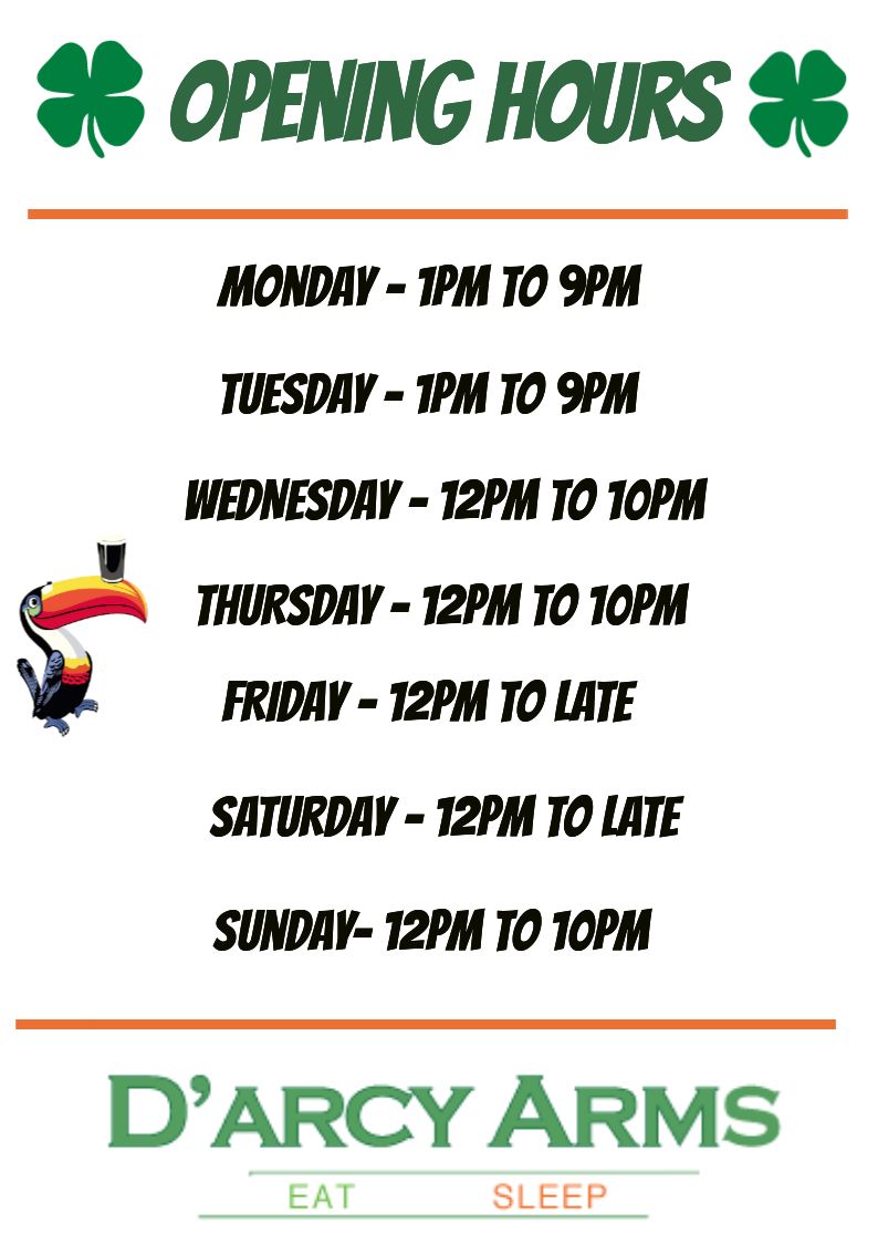Home » OPENING HOURS 2021 - D'Arcy Arms